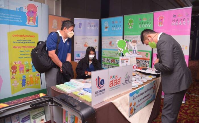 สำนักงานกองทุนสนับสนุนการสร้างเสริมสุขภาพ (สสส.) จัดงาน Happy Workplace Forum 2022 : The Future of workplace well-being สานพลังภาคีเครือข่ายขับเคลื่อนงานสร้างเสริมสุขภาวะในองค์กร พัฒนานวัตกรรมใหม่สำหรับการบริหารองค์กรและการดูแลบุคลากรให้มีความสุขในสถานที่ทำงานไปสู่สังคมสุขภาวะ ณ โรงแรมแมนดาริน กรุงเทพฯ โดยมีผู้แทนจากต้นแบบองค์กรสุขภาวะทั่วประเทศ ทั้งภาครัฐ เอกชน และประชาสังคม เข้าร่วมงานทั้งออนไลน์และออฟไลน์กว่า 500 คน