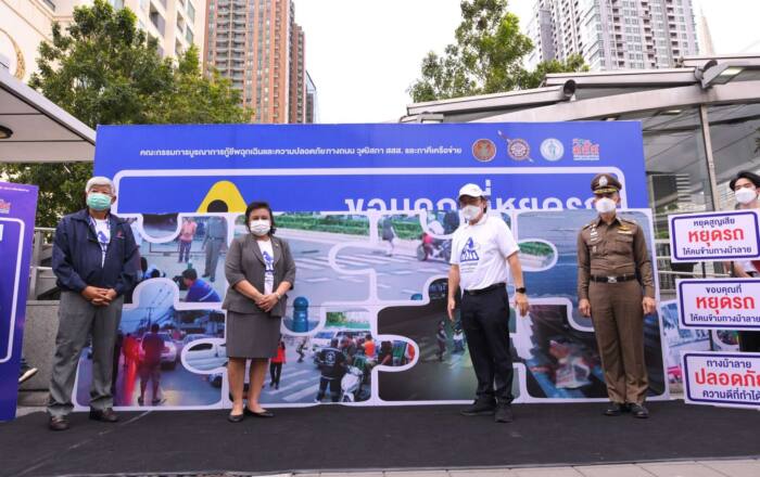 ที่บริเวณสี่แยกอโศก-เพชรบุรี คณะกรรมการบูรณาการกู้ชีพฉุกเฉินและความปลอดภัยทางถนน วุฒิสภา สำนักงานกองทุนสนับสนุนการสร้างเสริมสุขภาพ (สสส.) ร่วมกับสำนักงานเขตห้วยขวาง สถานีตำรวจนครบาลมักกะสัน และภาคีเครือข่ายด้านความปลอดภัยทางถนน จัดกิจกรรม “หยุดสูญเสีย หยุดรถ ให้คนข้ามทางม้าลาย #ความดีที่คุณทำได้” ครั้งที่ 2 เมื่อวันที่ 21 มี.ค.65 พร้อมเปิดป้ายประชาสัมพันธ์ แจกสติ๊กเกอร์ “ขอบคุณ ที่หยุดรถให้คนข้ามทางม้าลาย #ความดีที่คุณทำได้” รณรงค์สร้างจิตสำนึก ให้ผู้ขับขี่หยุดรถตรงทางม้าลาย ด้วยการลดความเร็วเขตชุมชน และชะลอก่อนถึงทางแยกทางข้าม