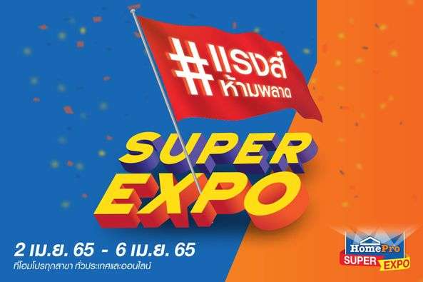 โฮมโปร จัดใหญ่มหกรรมเรื่องบ้านต้อนรับซัมเมอร์ “HomePro SUPER EXPO” ครั้งแรกปี 65 #แรงส์ห้ามพลาด พบขบวนสินค้าเรื่องบ้าน และโปรโมชันสุดคุ้ม !! ดีลลดสูงสุด 80% คอมโบลดอีกต่อกับแบรนด์ชั้นนำ สูงสุดอีก 10% จัดแรงส์ต่อเนื่อง เฉพาะสมาชิกบัตรโฮมการ์ด รับคุ้มจัดเต็ม SUPER 4 ต่อ!! กับ Super COUPON / Super DISCOUNT / Super POINT & Super VOUCHER สะดวกสบายช้อปได้ที่โฮมโปรทุกสาขาทั่วประเทศ และช้อปออนไลน์ทุกช่องทาง เริ่ม 2 เมษายน 65 – 6 เมษายน 65 รวม 5 วันเท่านั้น พลาดไม่ได้เด็ดขาด!!