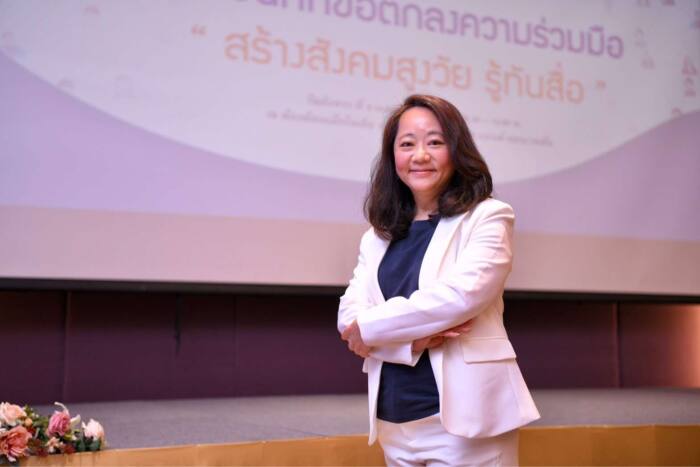 “การ MOU “สร้างสังคมสูงวัย รู้ทันสื่อ” ครั้งนี้ มีแนวทางส่งเสริมการรู้เท่าทันสื่อของผู้สูงวัย 4 ข้อ ได้แก่ 1.พัฒนาทักษะเท่าทันสื่อ มีความรอบรู้ด้านสุขภาพ ขยายผลเกิดเป็นเครือข่ายอาสาสูงวัยเฝ้าระวังสื่อในทุกพื้นที่ 2. พัฒนากลไกการทำงานในระดับพื้นที่ปฏิบัติการ สร้างกระบวนการเรียนรู้ กลไกเฝ้าระวังสื่อ 3. สนับสนุนการจัดการความรู้ งานวิชาการ เครื่องมือ และหลักสูตร ที่สอดคล้องกับบริบทการบริโภคสื่อของผู้สูงอายุในแต่ละพื้นที่ รวมถึงจัดตั้งศูนย์วิชาการด้านการรู้เท่าทันสื่อของผู้สูงอายุ ร่วมกับสถาบันวิจัยภาษาและวัฒนธรรมเอเชีย มหาวิทยาลัยมหิดล ถือเป็น Knowledge Hub เพื่อยกระดับการขับเคลื่อนงานด้านการรู้เท่าทันสื่อผู้สูงอายุในสังคมไทยยั่งยืน และ 4. พัฒนาการสื่อสาร สร้างความเข้าใจด้วยข้อมูลที่ถูกต้อง และสื่อสารสาธารณะสร้างการรับรู้ประเด็นผู้สูงอายุกับการรู้เท่าทันสื่อ มุ่งเป้าสู่การขับเคลื่อนกลไกเชิงนโยบาย” นางญาณี กล่าว