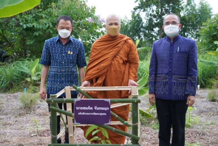 นายสมคิด จันทมฤก อธิบดีกรมการพัฒนาชุมชน กระทรวงมหาดไทย เป็นประธานเปิดกิจกรรม Kick off ต้นแบบ 1 ตำบล 1 วัด 1 คลังยาและอาหารสานข่ายขยายงาน MOU วัด มหาดไทย สถาบันเทคโนโลยีพระจอมเกล้าเจ้าคุณทหารลาดกระบัง บทบาทในการเกื้อหนุนระหว่างวัดและชุมชนให้มีความสุขอย่างยั่งยืน โดยมีพระพิพัฒน์วชิโรภาส ผู้อำนวยการศูนย์พุทธธรรมสมเด็จพระมหาธีราจารย์ วัดป่าดงใหญ่วังอ้อ ที่ปรึกษาปลัดกระทรวงมหาดไทย พร้อมด้วย ผู้ว่าราชการจังหวัดอุบลราชธานี รองผู้ว่าราชการจังหวัดอุบลราชธานี พัฒนาการจังหวัดอุบลราชธานี นายอำเภอเขื่องใน ผู้อำนวยการกลุ่มงานยุทธศาสตร์การพัฒนาชุมชน ผู้อำนวยการกลุ่มงานสารสนเทศการพัฒนาชุมชน ผู้อำนวยการกลุ่มงานส่งเสริมการพัฒนาชุมชน พัฒนาการอำเภอทุกอำเภอ จิตอาสาพัฒนาชุมชนจังหวัดอุบลราชธานี ผู้นำอาสาพัฒนาชุมชน และประชาชนผู้สนใจร่วมกิจกรรม ณ ชาววัง คลังยาและอาหาร บ้านวังอ้อ ต.หัวดอน อ.เขื่องใน จ.อุบลราชธานี
