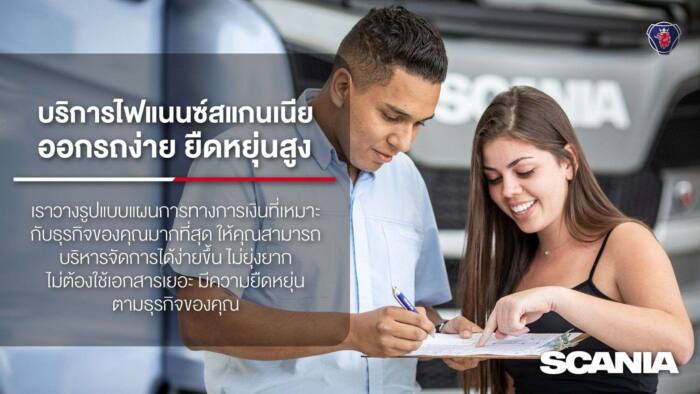 “ลูกค้าเพียงแค่ยื่นใบเสร็จการชำระเงินสินเชื่องวดล่าสุดของสถาบันการเงินใดก็ได้ หากตรงตามเงื่อนไขก็สามารถซื้อรถสแกนเนียในวงเงิน 9 ล้านบาท ได้ ซึ่งระบบนี้จะเป็นการช่วยเรื่องสภาพคล่องให้กับธุรกิจของผู้ประกอบการ แล้วด้วยความเข้าใจผู้ประกอบการขนส่งในประเทศไทย เราจึงยืดหยุ่นให้กับลูกค้าสแกนเนียมากกว่าใคร โดยลูกค้าสามารถพูดคุยปรับแต่งเงื่อนไขการซื้อกับเราได้หลากหลายรูปแบบ ไม่ว่าจะเป็นเงินดาวน์ ดอกเบี้ย ระยะเวลาในการผ่อนชำระ หรือเครดิตเทอม นอกจากนั้น หากเป็นลูกค้าเก่าสามารถยื่นขอขยายวงเงินต่อเนื่องไปถึง 18 ล้านบาท ขึ้นอยู่กับประวัติการชำระ ทำให้ลูกค้าสามารถขยายธุรกิจได้ง่ายขึ้น”