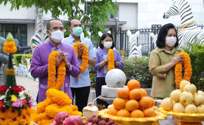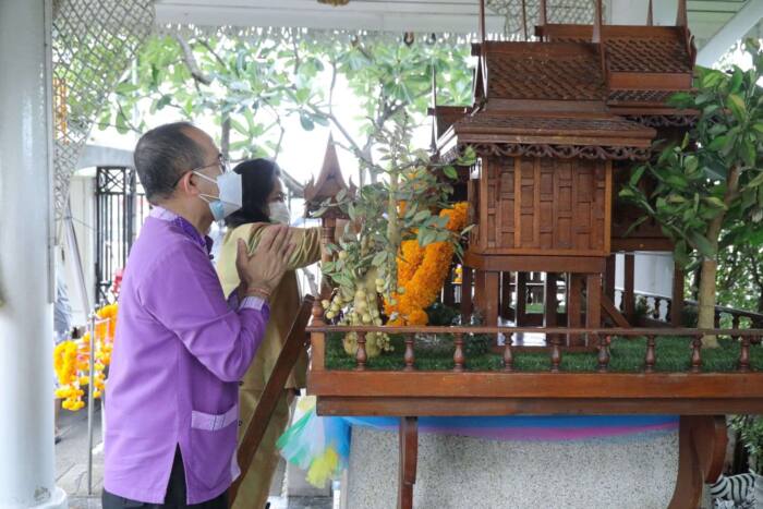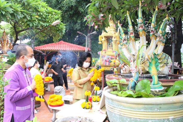 อธิบดี พช. บวงสรวงศาลตายาย และสิ่งศักดิ์สิทธิ์ที่ปกป้องคุ้มครองบริเวณศูนย์แสดงสินค้าและการประชุมอิมแพ็ค เมืองทองธานี เพื่อขอพรให้การจัดงาน OTOP Midyear 2022 “สุขช้อป สุขใจ สุขทั่วไทย รวมไว้ในที่เดียว” ให้ราบรื่นประสบความสำเร็จ และสร้างขวัญกำลังใจแก่ผู้ประกอบการชุมชน