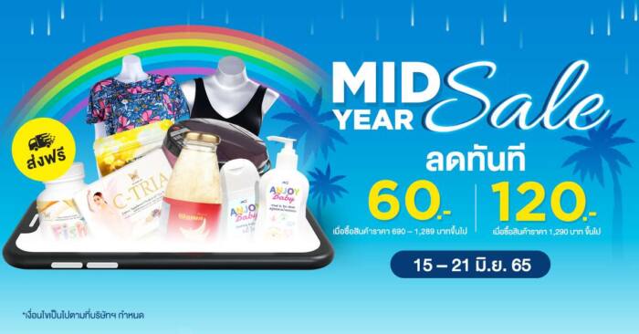 บริษัท เจเคเอ็น ไฮ ช็อปปิ้ง จำกัด หรือ JKN Hi Shopping จัด MID YEAR SALE ลดแบบไม่มีกั๊ก ไม่ต้องมีโค้ด ไม่ต้องเก็บคูปอง รับส่วนลดเลยทันทีสูงสุดถึง 120 บาท สเต็ปที่ 1 ลดทันที 60 บาท เมื่อสั่งซื้อสินค้าราคา 990 บาท – 1,090 บาทขึ้นไป* และสเต็ปที่ 2 ลดสูงสุด 120 บาทเมื่อสั่งซื้อสินค้าราคา 1,190 บาทขึ้นไป* (*เฉพาะสินค้าที่เข้าร่วมรายการ) และพิเศษเมื่อช้อปปิ้งผ่าน Line Shopping กดรับคูปองส่วนลดเพิ่มสูงสุด 150 บาทเมื่อสั่งซื้อสินค้าขั้นต่ำ 1,500 บาท