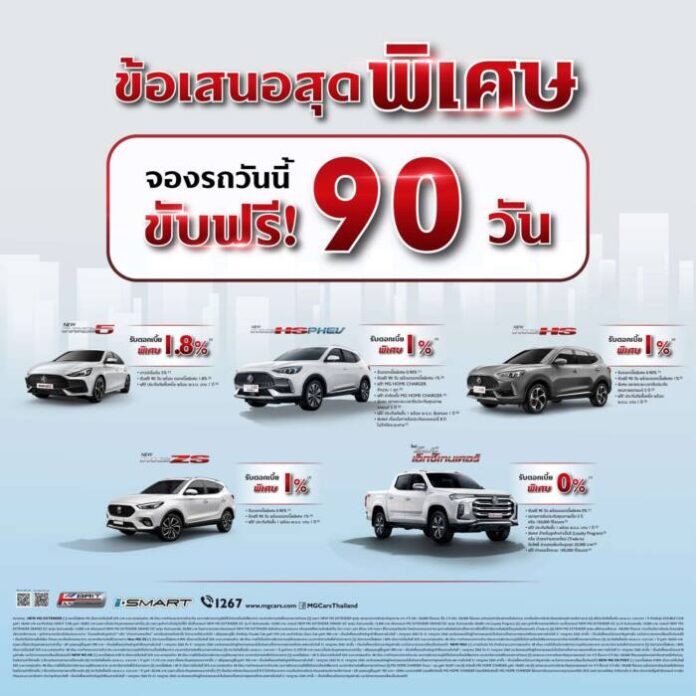 นายพงษ์ศักดิ์ เลิศฤดีวัฒนวงศ์ รองกรรมการผู้จัดการ บริษัท เอ็มจี เซลส์ (ประเทศไทย) จำกัด กล่าวว่า “สำหรับงาน FAST AUTO SHOW THAILAND 2022 เอ็มจีเตรียมแคมเปญใหญ่ “จองรถวันนี้ ขับฟรี 90 วัน” ฉลองความสำเร็จยอดขายรวมครึ่งปีแรก 15,315 คัน (มกราคม – มิถุนายน 2565) เติบโตสูงขึ้น 6% เมื่อเทียบกับ ในปีที่ผ่านมา แบ่งเป็นยอดขายจาก NEW MG5 7,044 คัน MG ZS 4,189 คัน MG EXTENDER 1,621 คัน MG3 308 คัน ในกลุ่มรถยนต์ไฟฟ้าที่เริ่มส่งมอบให้กับลูกค้าทั้งรุ่น MG EP และ MG ZS EV รวม 800 คัน และ MG HS และ MG HS PHEV มียอดขายอยู่ที่ 1,353 คัน และได้รับความสนใจเพิ่มมากขึ้น โดยเฉพาะรุ่นปลั๊กอินไฮบริด ที่เป็นรุ่นไฮไลท์ในงานนี้ และเพื่อเพิ่มโอกาสให้คนไทยได้เป็นเจ้าของยนตรกรรมที่เพียบพร้อมด้วยเทคโนโลยี ความทันสมัย และความคุ้มค่า อีกหนึ่งความพิเศษของปีนี้ ทางเอ็มจีเตรียมข้อเสนอพิเศษดาวน์ 0 บาท พร้อมผ่อนนานสูงสุดถึง 84 เดือน* สำหรับข้าราชการ และพนักงานรัฐวิสาหกิจ และสมาชิกกองทุนบำเหน็จบำนาญข้าราชการ (กบข.) รวมถึงพนักงานบริษัทที่รับเงินเดือนผ่านบัญชีธนาคาร เพิ่มความคุ้มค่าในการจองซื้อรถให้กับลูกค้ามากขึ้น สำหรับผู้ที่สนใจสามารถรับสิทธิพิเศษดังกล่าวได้ เพียงแค่จองรถยนต์ภายในงานฯ และออกรถภายในวันที่ 31 กรกฎาคมนี้”