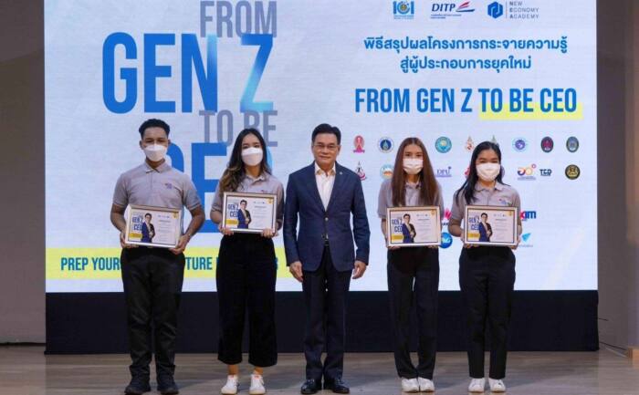 ข้อมูลจากกรมส่งเสริมการค้าระหว่างประเทศระบุว่า โครงการ From Gen Z to be CEO เป็นโครงการที่เกิดขึ้นภายใต้นโยบายของนายจุรินทร์ ลักษณวิศิษฏ์ เพื่อเพิ่มจำนวนผู้ประกอบการให้เกิดขึ้นในระบบเศรษฐกิจ โดยเฉพาะในกลุ่มผู้ประกอบการที่เป็นคนรุ่นใหม่ จัดอบรมหลักสูตรเตรียมความพร้อมสู่การเป็นผู้ประกอบการรุ่นใหม่ โดยมี CEOs และวิทยากรที่มีชื่อเสียงระดับประเทศร่วมถ่ายทอดความรู้และประสบการณ์ และร่วมมือกับ 104 สถาบันชั้นนำทั่วประเทศ และ