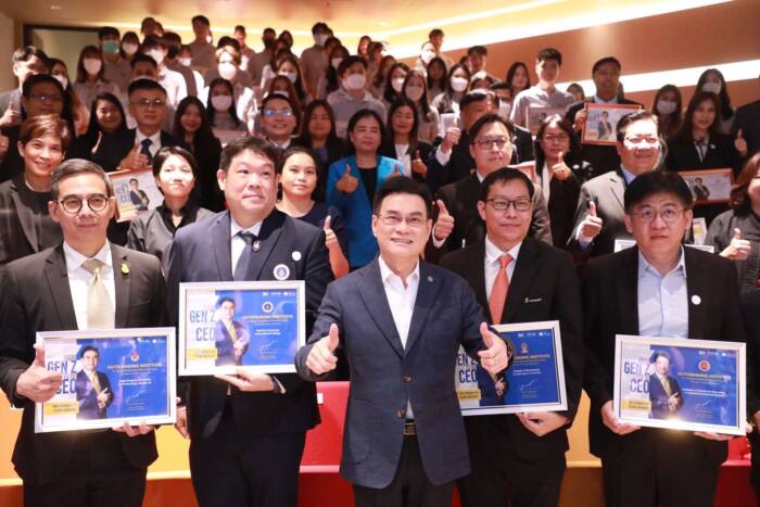 นายจุรินทร์ กล่าวว่า ตนเชื่อว่าทุกคนจะต้องภาคภูมิใจที่สามารถทำแบบทดสอบได้คะแนนสูงสุดเป็น 1 ใน 100 จากผู้เข้าร่วมโครงการทั้งหมดกว่า 16,000 คนในปีนี้ สำหรับโครงการปั้น Gen Z ให้เป็น CEO เป็นนโยบายที่กรมส่งเสริมการค้าระหว่างประเทศ โดยสถาบันผู้ประกอบการการค้ายุคใหม่ (NEA) ดำเนินการมาตลอด 3 ปี ถือเป็นความภาคภูมิใจของพวกเรากระทรวงพาณิชย์ทุกคน และเป็นนโยบายสำคัญที่ตนเน้นย้ำให้ดำเนินการโดยต่อเนื่อง ตั้งเป้าหมายที่ชัดเจนว่าแต่ละปีจะผลิตได้จำนวนเท่าไหร่ เพื่อให้น้องๆ เจเนอเรชั่นใหม่ของประเทศ มีโอกาสเดินหน้าไปสู่ฝันที่ฝันไว้ ซึ่งตนเชื่อว่าน้อง Gen Z จำนวนมากฝันว่าจะเป็นนายตัวเองมากกว่าอยู่ในองค์กรอย่างเนิ่นนานจนเกษียณอายุเหมือนเจเนอเรชั่นก่อนหน้า การเป็นนายตัวเองที่เป็นรูปธรรมชัดเจน คือความเป็น CEO ขององค์กรธุรกิจที่ตนเองก่อตั้งขึ้น โครงการปั้น Gen Z เป็น CEO ของกระทรวงพาณิชย์จึงเกิดขึ้น เพื่อให้น้องรุ่นใหม่เป็นแม่ทัพทั้งในภาคการผลิต ภาคบริการ ภาคการตลาด บริหารจัดการทั้งในประเทศและต่างประเทศ เพื่อขับเคลื่อนเศรษฐกิจของตนเอง ครอบครัว สังคมและประเทศในอนาคตต่อไป ซึ่งดำเนินการมา 3 ปี ตั้งแต่ปี 63-65 มีสถาบันการศึกษาเข้าร่วมโครงการถึง 104 แห่งจากทั่วประเทศ และพันธมิตรธุรกิจระดับประเทศ ระดับภูมิภาคและระดับโลกร่วมโครงการ ไม่ว่าจะเป็น True Huawei Bitkub EXIM Bank Shopee P&G Coro Brothers หรืออื่นๆ ขอขอบคุณที่เข้ามาร่วมโครงการกับกระทรวงพาณิชย์จนประสบความสำเร็จทำให้ 3 ปีสามารถปั้น Gen Z เป็น CEO ได้ถึง 36,521 ราย เพื่อเป็นกำลังสำคัญในการขับเคลื่อนเศรษฐกิจของประเทศต่อไปในอนาคตทั้งเศรษฐกิจในประเทศและส่งออกเพื่อนำรายได้เข้าประเทศต่อไป