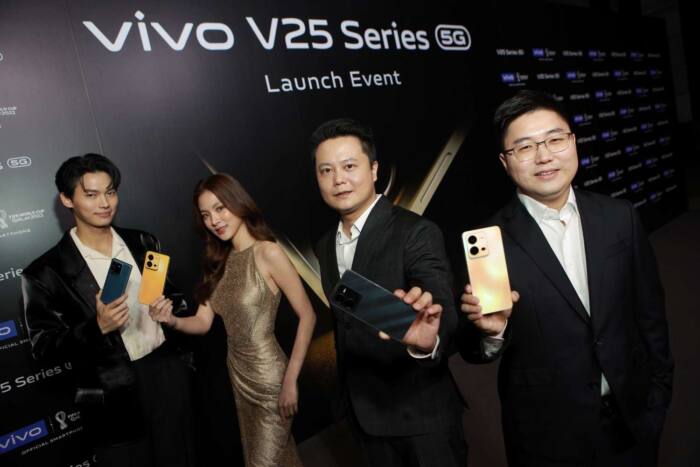 vivo V25 Series 5G สมาร์ตโฟนรุ่นใหม่ล่าสุดจาก vivo V Series โดดเด่นด้วยฟีเจอร์กล้องถ่ายภาพความละเอียดสูง 64MP พร้อมฟีเจอร์ OIS Ultra-Sensing จาก V25 Pro ช่วยให้ทุกภาพไม่สั่นไหวในทุกสถานการณ์ รวมถึงกล้องหน้าความละเอียดสูง 50MP จาก V25 ที่จะทำให้คุณถ่ายภาพเซลฟีไม่หลุดโฟกัสด้วยฟีเจอร์ Eye Autofocus คมชัดสะกดทุกสายตา พร้อมรองรับโหมดถ่ายภาพกลางคืน Super Night Portrait ที่จะทำให้ภาพถ่ายยามค่ำคืนโดดเด่นกว่าที่เคย เตรียมวางจำหน่ายอย่างเป็นทางการแล้วทั้งรุ่น vivo V25 กับสองสีใหม่ Diamond Black และ Sunrise Gold ที่ราคา 13,999 บาท (รุ่น 8G + 12 GB) และราคา 14,999 บาท (รุ่น 8GB + 256 GB) รวมทั้ง vivo V25 Pro กับสี Starlight Black และ Surfing Blue ที่ราคา 19,999 บาท โดยความพิเศษของทั้งสองรุ่นคือ มาพร้อมกับฝาหลังแบบกระจกที่มีเทคโนโลยี Color-changing Glass ที่สามารถเปลี่ยนสีได้[1] โดยสีของฝาหลังจะทำปฏิกิริยากับแสงแดดและแหล่งกำเนิดรังสี UV อื่นๆ แล้วจึงเปลี่ยนเป็นสีต่างๆ ทำให้กลายอันเป็นเอกลักษณ์ ดูโดดเด่นและมีสไตล์ที่ไม่เหมือนใคร