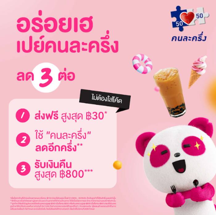 สายกิน สายโปรฯ ห้ามพลาด! foodpanda ส่งโปร “อร่อยเฮ เปย์คนละครึ่ง” เฟส 5 ลด 3 ต่อ ลดแล้วลดอีก! พร้อมรับเงินคืนสูงสุด 800 บาท!! ถึง 30 กันยายนนี้