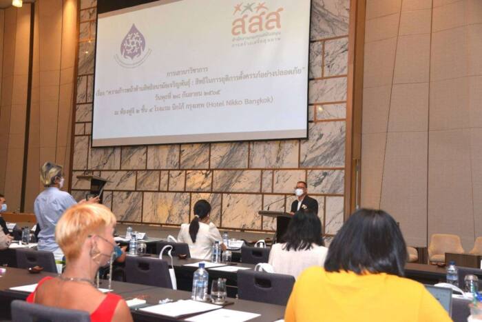 นางสาวพรประไพ กาญจนรินทร์ ประธานกรรมการสิทธิมนุษยชนแห่งชาติ กล่าวเปิดเสวนาว่าการเข้าถึงการยุติการตั้งครรภ์ที่ปลอดภัยเป็นส่วนหนึ่งของสิทธิด้านสุขภาพที่เกี่ยวกับอนามัยเจริญพันธุ์ซึ่งได้รับการรับรองในอนุสัญญาว่าด้วยการขจัดการเลือกปฏิบัติต่อสตรีในทุกรูปแบบ (CEDAW) และกติการะหว่างประเทศด้านสิทธิทางเศรษฐกิจ สังคม และวัฒนธรรม (ICCPR) ที่ประเทศไทยเป็นภาคีและมีพันธกรณีต้องปฏิบัติตาม โดยคณะกรรมการผู้เชี่ยวชาญประจำกติกา ICCPR เห็นว่า การขาดบริการฉุกเฉินด้านสูติกรรมหรือการปฏิเสธการทำแท้งมักนำไปสู่การเสียชีวิตและการเจ็บป่วยของผู้หญิงที่เป็นมารดา ซึ่งถือเป็นการละเมิดต่อสิทธิมนุษยชนในการมีชีวิตและสุขภาพอนามัยที่ดี เมื่อเดือนกุมภาพันธ์ 2564 ประเทศไทยได้แก้ไขและบังคับใช้ประมวลกฎหมายอาญา มาตรา 301 ที่กำหนดให้หญิงที่มีอายุครรภ์ไม่เกิน 12 สัปดาห์ สามารถทำแท้งได้โดยไม่ผิดกฎหมาย และมาตรา 305 ที่กำหนดเงื่อนไขเพิ่มเติมให้ผู้ประกอบวิชาชีพเวชกรรมและตามหลักเกณฑ์ของแพทยสภาให้บริการยุติการตั้งครรภ์ได้โดยไม่มีความผิด อย่างไรก็ดีจากรายงานสถานการณ์สิทธิมนุษยชนปี 2564 ของ กสม. พบว่าภายหลังจากที่กฎหมายบังคับใช้ ยังมีปัญหาในการให้บริการยุติการตั้งครรภ์หลายประการ เช่น ความล่าช้าในการส่งต่อผู้เข้ารับบริการยุติการตั้งครรภ์ โรงพยาบาลของรัฐจำนวนมากยังไม่พร้อมให้บริการยุติการตั้งครรภ์และไม่ส่งต่อ (Refer) ไปยังสถานบริการอื่นที่พร้อมให้บริการ ซึ่งอาจทำให้อายุครรภ์ของผู้หญิงเกินกว่าที่กฎหมายกำหนด และประสบปัญหาการเบิกค่าใช้จ่ายจากสำนักงานหลักประกันสุขภาพแห่งชาติ (สปสช.) เป็นต้น นอกจากนี้ ในรอบ 6 เดือนแรกของปี 2565 พบว่า ผู้หญิงส่วนใหญ่ยังไม่ทราบข้อมูลแหล่งบริการโรงพยาบาลที่ให้บริการยุติการตั้งครรภ์ ซึ่งกสม. ได้มีข้อเสนอแนะต่อรัฐบาลให้เร่งรัดการออกกฎหมายลำดับรองเพื่อแก้ไขปัญหาดังกล่าวและเสริมสร้างความรู้ความเข้าใจต่อประชาชนเกี่ยวกับกฎหมายและกลไกที่เกี่ยวข้อง
