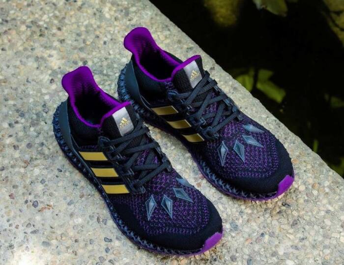 ULTRA 4D รองเท้ากีฬาแบบไฮบริดที่ผสานโครงสร้างหลักของ Ultraboost เข้ากับพื้นรองเท้าชั้นกลาง 4D ที่ขึ้นโครงสร้างจากการพิมพ์รูปแบบ 3 มิติ ซึ่งจากการออกแบบอย่างแม่นยำทำให้รองเท้ารุ่นนี้มีประสิทธิภาพการใช้งานที่ดีเยี่ยม ทั้งในด้านความมั่นคง ความรู้สึกสบาย และการรองรับแรงกระแทก พร้อมทั้งยังทำให้ผู้สวมใส่ดูโดดเด่นด้วยลายกราฟิกตามแบบฉบับของวากานดาและดีไซน์ของสร้อยคอ Black Panther