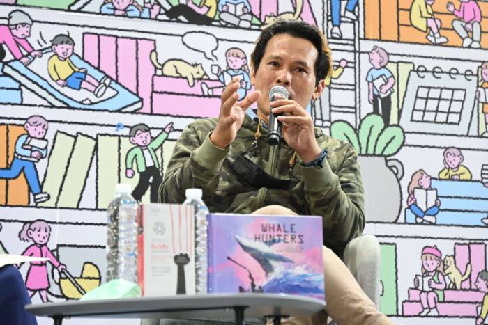 “WHALE HUNTERS (นักล่าวาฬ)” ที่เพิ่งได้รับการตัดสินให้รับรางวัลชนะเลิศประเภทการ์ตูน รางวัลเซเว่นบุ๊คอวอร์ดครั้งที่ 19 เป็นหนังสือการ์ตูนในรูปแบบ Graphic Novel ถ่ายทอดผ่าน 4 เรื่องเล่าจากท้องทะเลที่เคยปรากฏในรูปแบบของเรื่องสั้น กวี และบทเพลงจากผลงานของผู้เขียน เป็นภาพวาดลายเส้นเนื้อหาเปรียบเทียบเชิงปรัชญาชีวิตในการต่อสู้ทางความคิดของตนเอง ผ่านเรื่องราวของนักล่าวาฬจากเรื่อง Light House และเรื่อง Float ที่ถ่ายทอดเรื่องราวของแพที่อยากเป็นอิสระ กับชายเฝ้าประภาคาร ส่วนเรื่อง KIMARZ เป็นเรื่องส่งเสริมการเข้าใจตนเอง สังคม ครอบครัว การต่อสู้ชีวิต การต่อสู้กับการยึดติดในตัวตน และความอยู่รอดของสังคม เผ่าพันธุ์