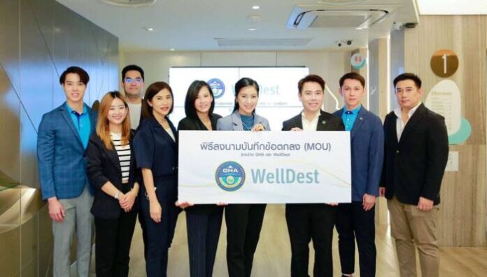 นายแพทย์สมพร คำผง, Advisory Board of GHA, GHA Standard Committee, Executive Director GHA Asia-Pacific Region จาก Global Healthcare Accreditation (GHA) ร่วมกับ นิสา ทั่งทอง, รักษาการ CEO ของ WellDest ได้ลงนามบันทึกข้อตกลงความร่วมมือ (MOU) รุกตลาดต้อนรับเทรนด์การท่องเที่ยวเชิงสุขภาพและเชิงการแพทย์ (Wellness Tourism) ซึ่งกำลังเป็นที่จับตามองและเป็นที่นิยมจากนักท่องเที่ยวทั่วโลกโดยมี สมชัย พัฒนพงษ์ชัย, บุศริน วัฒนาพรศิริโชติ, อัคคยุต บุญอินทร์ และ ธัญวดี พงศ์ธนาพาณิช ผู้ร่วมก่อตั้ง และฝ่ายจัดการของ WellDest รวมไปถึง เรวัต เด่นจักรวาฬ และ ณัฐกิต การย์เกรียงไกรตัวแทนจาก GHA ประเทศไทย ร่วมเป็นสักขีพยาน