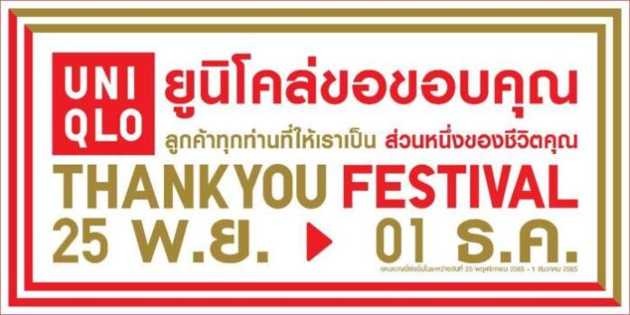 ยูนิโคล่ ส่งมอบคำขอบคุณแก่ลูกค้าผ่าน “เทศกาลขอบคุณ” – THANK YOU FESTIVAL ที่พร้อมตอบแทนลูกค้าที่สนับสนุนและให้ยูนิโคล่เป็นส่วนหนึ่งในชีวิต ตั้งแต่วันที่ 25 พฤศจิกายน – 1 ธันวาคม 2565