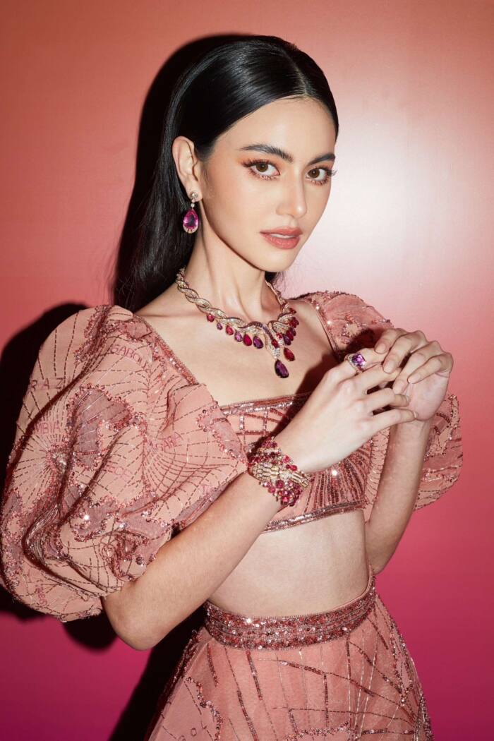 งานนี้ ใหม่-ดาวิกา โฮร์เน่ เผยลุคสุดปังในการร่วมแฟชั่นโชว์ในครั้งนี้ด้วยลุคสุดโก้ ด้วยเครื่องประดับชั้นสูงจากบุลการี ด้วย Serpenti Fruit Garden Necklace สีพิงค์โกลด์ ที่เป็นมาสเตอร์พีซเอกลักษณ์ของแบรนด์ พร้อมด้วยเครื่องประดับเข้าเซ็ตทั้งต่างหู แหวน และนาฬิกา พร้อมกับโททัลลุคในครั้งนี้กับชุดสุดวิจิตรจาก Zuhair Murad ในสีหวานที่เสริมลุค Friend of Bulgari มีพลังและถ่ายทอดออกมาได้อย่างโก้หรู