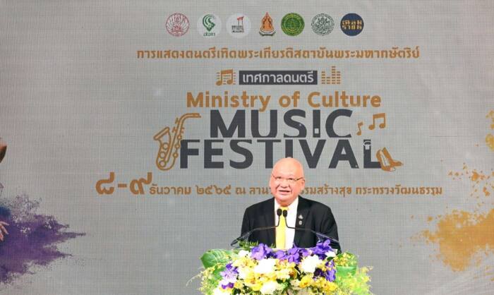 “งานเทศกาลดนตรี Ministry of Culture Music Festival (MOC MU FES) ที่จะจัด ณ ลานวัฒนธรรมสร้างสุข กระทรวงวัฒนธรรม ประกอบด้วย 2 รายการ โดยรายการแรก เป็นการแสดง “Winter Love Songs : บทเพลงพระราชนิพนธ์” จากวงดนตรีเฉลิมราชย์ วงดุริยางค์สากล กรมศิลปากร วงดุริยางค์กรุงเทพมหานคร ร่วมกันบรรเลงและขับร้องบทเพลงพระราชนิพนธ์ ในพระบาทสมเด็จพระบรมชนกาธิเบศร มหาภูมิพลอดุลยเดชมหาราช บรมนาถบพิตร อาทิ บทเพลง ความฝันอันสูงสุด ในดวงใจนิรันดร์ เป็นต้น สำหรับรายการที่ 2 เป็นการแสดง “ลีลาศสร้างสุขกับสุนทราภรณ์” บรรเลงบทเพลงโดยวงดนตรีสุนทราภรณ์ สนุกสนานเพลิดเพลินไปกับลีลาศและรำวงในจังหวะที่หลากหลาย ซึ่งเปิดให้ประชาชนเข้าร่วมงานได้ฟรีไม่มีค่าใช้จ่าย” ปลัดกระทรวงฯ กล่าว