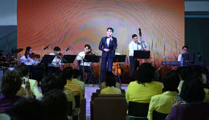 ทั้งนี้ บรรยากาศในงานแถลงข่าวมีการแสดงดนตรี “Winter Love Songs : บทเพลงพระราช-นิพนธ์” ดนตรีโดยวงดุริยางค์สากล กรมศิลปากร ในบทเพลงพระราชนิพนธ์ “คำหวาน” (บรรเลง) ต่อด้วย “แผ่นดินของเรา” และเพลงลูกกรุงอมตะ “หยาดเพชร” ร้องโดย นายรัฐพงศ์ ปิติชาญ จากนั้นเป็นการแสดง “ลีลาศสร้างสุขกับสุนทราภรณ์” โดยวงดนตรีสุนทราภรณ์ เมดเลย์ 3 เพลง ได้แก่ “หิมพานต์” ร้องโดย พรศุลี ปิติชาญ “เริงลีลาศ” ร้องโดย โน้ต พรชัย – แจ๊บ – ณฤพล “ตลุงมอญซ่อนผ้า” ร้องโดย แจน – นันทพร – แจ๊บ – ณฤพล เพลิดเพลินกับการโชว์เต้นลีลาศ คู่ (ชาย-หญิง) โดย นายภูราห์เทพ ภู่ระหงษ์ นางพิจิตรา บัวบาล และยังได้รับเกียรติจากผู้แทนวงดนตรีเข้าร่วมแถลงข่าว ได้แก่ นายทรงวุฒิ จรูญเรืองฤทธิ์ นักเปียโนและนักเรียบเรียงเสียงประสานประจำวงดนตรีเฉลิมราชย์ กล่าวถึงรายละเอียดการแสดง “Winter Love Songs : บทเพลงพระราชนิพนธ์” ที่จะใช้แสดง และ นางอติพร เสนะวงศ์ กรรมการและเลขาธิการมูลนิธิสุนทราภรณ์ ในพระราชูปถัมภ์ ได้กล่าวถึงรายละเอียดการแสดง “ลีลาศสร้างสุขกับสุนทราภรณ์” อีกด้วย
