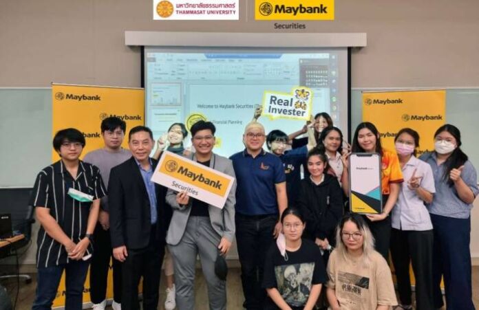 บมจ.หลักทรัพย์ เมย์แบงก์ (ประเทศไทย) โดย ณภัทร์ ภัทรานิตย์ ผู้อำนวยการอาวุโส ฝ่ายธุรกิจอนุพันธ์ จัดสัมมนาพิเศษ แบ่งปันความรู้ในหัวข้อ “การวางแผนทางการเงิน เพื่อความมั่นคงในชีวิต” สร้างความตระหนักถึงความสำคัญของการวางแผนการเงินและการลงทุนให้กับคนรุ่นใหม่ รวมถึงแนะนำการใช้งาน Maybank Invest แอปพลิเคชันด้านการลงทุนที่เปรียบเสมือนคู่คิดให้กับทุกคนเป็นนักลงทุนรุ่นใหม่ได้อย่างที่แท้จริงได้ ณ ภาควิชาเทคนิคการแพทย์ คณะสหเวชศาสตร์ มหาวิทยาลัยธรรมศาสตร์ เมื่อเร็วๆนี้