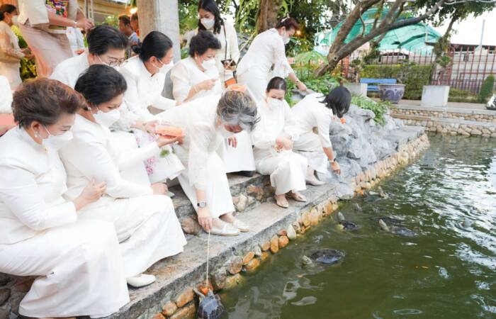 หลังจากนั้น ประธานสงฆ์นำเจริญจิตตภาวนา พร้อมนั่งเจริญภาวนาเพื่อถวายเป็นพระกุศล ประธานในพิธีกราบนมัสการพระรัตนตรัย ถวายความเคารพเบื้องหน้าพระฉายาลักษณ์ฯ ต่อจากนั้น ประกอบพิธีปล่อยเต่า ที่เขามอ ภายในบริเวณวัดประยุรวงศาวาสวรวิหาร เพื่อถวายเป็นพระกุศล ให้ทรงหายจากพระอาการประชวรในเร็ววัน เป็นเสร็จพิธี