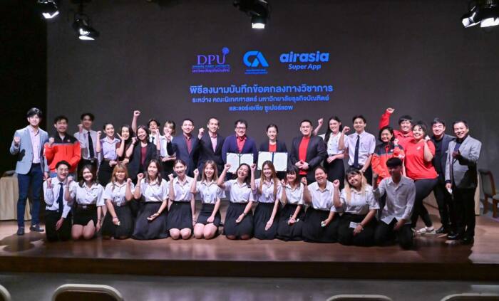 airasia Super App ร่วมกับคณะนิเทศศาสตร์ มหาวิทยาลัยธุรกิจบัณฑิตย์ ลงนามความร่วมมือทางวิชาการ(MOU) เพื่อสนับสนุนศักยภาพนักศึกษามหาวิทยาลัยธุรกิจบัณฑิตย์อย่างรอบด้าน ทั้งในด้านวิชาการ และทักษะด้านวิชาชีพ เปิดโอกาสให้นักศึกษาได้มีโอกาสฝึกประสบการณ์จากผู้เชี่ยวชาญเฉพาะด้าน ยกระดับสู่การเป็นคอนเทนตครีเอเตอร์มืออาชีพ โดยผู้บริหารของทั้งสองหน่วยงาน ได้แก่ นางสาวชนันญา ไชยการ ผู้อำนวยการฝ่ายธุรกิจขนส่ง airasia Super App และ ผศ.ดร.ทัณฑกานต์ ดวงรัตน์ รองอธิการบดีสายงานเครือข่ายสัมพันธ์ มหาวิทยาลัยธุรกิจบัณฑิตย์ ให้เกียรติร่วมลงนามในพิธีดังกล่าว