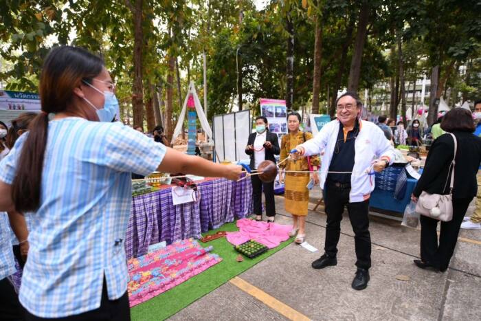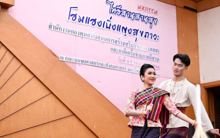 เมื่อวันที่ 4 ก.พ. 2565 ที่ ม.ขอนแก่น สำนักงานกองทุนสนับสนุนการสร้างเสริมสุขภาพ (สสส.) ร่วมกับ ศูนย์ประชาสังคมและการจัดการองค์กรเอกชนสาธารณประโยชน์ (ศปส.) คณะมนุษยศาสตร์ และสังคมศาสตร์ ม.ขอนแก่น และภาคีเครือข่ายภาคอีสาน จัดงานวิชาการ และเชื่อมประสานภาคีเครือข่ายสุขภาวะภาคอีสาน เวทีโชว์ แชร์ เชื่อม “มหกรรมไทอีสานสานสุข : โฮมแฮงเบิ่งแญงสุขภาวะ” รูปแบบ Hybrid ทั้ง Onsite และ Online ในพื้นที่ศูนย์เรียนรู้ 20 จังหวัด มีผู้เข้าร่วมจำนวน 2,000 คน โดยมี รศ.นพ.ชาญชัย พานทองวิริยะกุล อธิการบดี ม.ขอนแก่น พร้อมด้วยดร.สุปรีดา อดุลยานนท์ ผู้จัดการกองทุน สสส. ศ.ดร.บัวพันธ์ พรหมพักพิง ผอ.ศูนย์ประชาสังคม และการจัดการองค์กรเอกชนสาธารณประโยชน์ เข้าร่วม