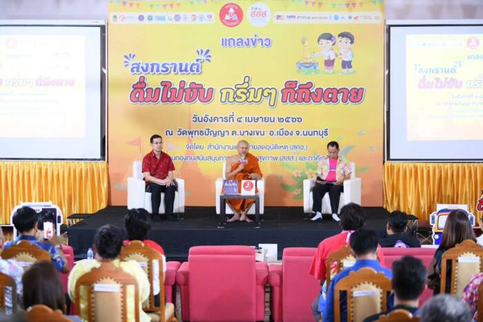 เมื่อวันที่ 4 เม.ย. 2566 ณ วัดพุทธปัญญา จ.นนทบุรี สำนักงานเครือข่ายลดอุบัติเหตุ (สคอ.) สำนักงานกองทุนสนับสนุนการสร้างเสริมสุขภาพ (สสส.) และภาคีเครือข่าย จัดงานแถลงข่าว “สงกรานต์ดื่มไม่ขับ กรึ่มๆ ก็ถึงตาย” เพื่อรณรงค์สร้างความตระหนักขับขี่ปลอดภัย ป้องกันและลดอุบัติเหตุทางถนนในช่วงเทศกาลสงกรานต์ พระมหาทวี โพธิเมธี เจ้าอาวาสวัดพุทธปัญญา กล่าวว่า “วันสงกรานต์” เป็นวันปีใหม่ไทย ที่ยึดถือเป็นวัฒนธรรมที่ดีงาม สืบสานต่อกันมาอย่างยาวนานจากรุ่นสู่รุ่น อีกทั้งยังเป็นช่วงเวลาแห่งความสุขของหลายคน จึงขอฝากคติธรรมเพื่อให้ชาวพุทธได้นำไปเป็นแนวทางปฏิบัติในทางพระพุทธศาสนา “พระพุทธเจ้าทรงได้ให้ชาวพุทธเว้นจากการดื่มน้ำเมา” อันเป็นเหตุทำให้สติ (ความระลึกได้) สัมปชัญญะ (ความรู้ตัว)ของตนเองหายไป อันเปรียบเสมือนเรือที่ไร้หางเสือคอยบังคับทิศทาง การดื่มเครื่องดื่มแอลกอฮอล์เป็นการทำผิดศีลข้อที่ 5 ส่งผลให้เกิดการขาดความยับยั้งชั่งใจ เพราะคนที่ขาดสติจากการดื่มแอลกอฮอล์สามารถกระทำความชั่วได้ง่าย รวมถึงประพฤติผิดในศีลข้ออื่นๆ ก็สามารถทำได้ง่ายด้วยเช่นกัน