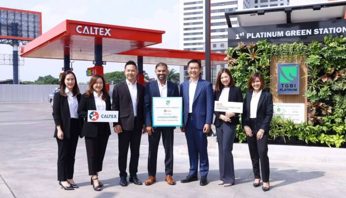 เมื่อเร็ว ๆ นี้ นายชาแชงค์ นานาวาติ ประธานกรรมการและผู้จัดการใหญ่ บริษัท เชฟรอน (ไทย) จำกัด ผู้จัดจำหน่ายผลิตภัณฑ์คาลเท็กซ์ (กลาง) ฉลองเปิดสถานีบริการน้ำมันคาลเท็กซ์ สาขาศรีนครินทร์ ที่ได้รับการรับรองมาตรฐานอาคารเขียว TREES แห่งแรกในประเทศไทยอย่างเป็นทางการ โดยสถานีบริการน้ำมันแห่งนี้ได้รับการประเมินและรับรองตามมาตรฐานอาคารเขียว Thai’s Rating of Energy and Environmental Sustainability (TREES) ในระดับสูงสุด Platinum จาก สถาบันอาคารเขียวไทย (TGBI) ซึ่งนับเป็นการตอกย้ำความมุ่งมั่นของเชฟรอนในการขับเคลื่อนเป้าหมายด้านการลดคาร์บอน โดยมี นายวชิระชัย คูนำวัฒนา กรรมการผู้จัดการ บริษัท เอสซีจี บิลดิ้ง แอนด์ ลีฟวิ่งแคร์คอนซัลติ้ง จำกัด (ที่ 3 จากขวา) ในฐานะบริษัทผู้ดำเนินการงานที่ปรึกษาการขอรับรองมาตรฐานอาคารเขียว ร่วมแสดงความยินดี ณ สถานีบริการน้ำมันคาลเท็กซ์ สาขาศรีนครินทร์ ถนนศรีนครินทร์ เขตสวนหลวง จังหวัดกรุงเทพฯ