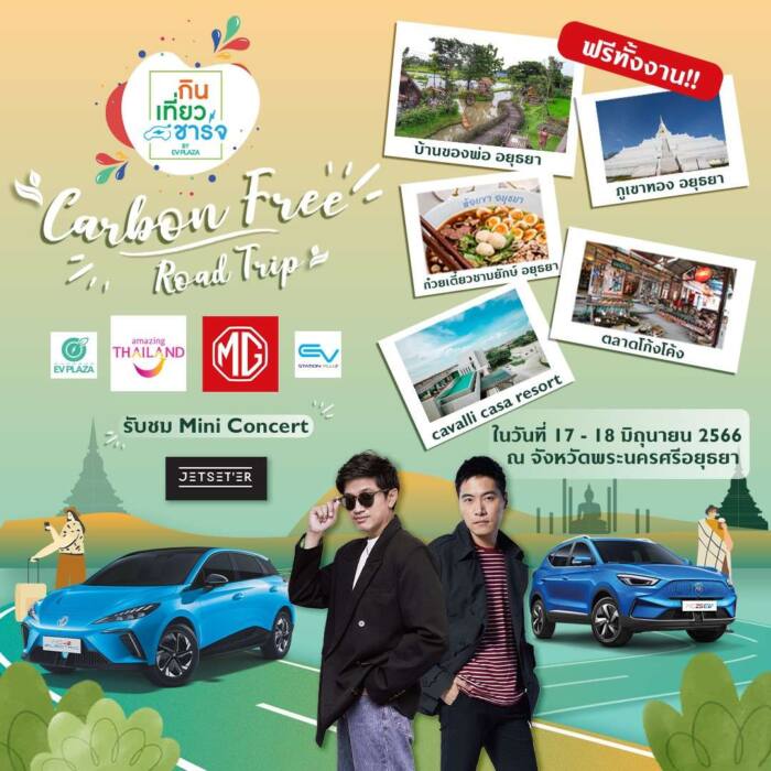 นอกจากนี้ เอ็มจี ยังได้จัดกิจกรรมพิเศษให้กับลูกค้ายานยนต์ไฟฟ้า เอ็มจี ทุกรุ่น ได้ร่วมทริปสุดพิเศษ กินเที่ยวชาร์จ Carbon Free Road Trip ขับอีวีเที่ยวพระนครศรีอยุธยา ที่มีกำหนดจัดขึ้นในวันที่ 17-18 มิถุนายนนี้ โดยเปิดรับสมัครเจ้าของรถไฟฟ้า เอ็มจี ไม่จำกัดรุ่น ร่วมเป็น 1 ใน 30 ผู้โชคดีที่จะมาประเดิมเปิดทริปแรก ด้วยกติกาง่ายๆ เพียงแค่ถ่ายภาพคู่กับรถไฟฟ้าแบรนด์เอ็มจีพร้อมบอกเล่าความประทับใจหลังจากที่ได้ใช้งาน ลงใน www.facebook.com/MGcarsThailand โดยเปิดรับสมัครตั้งแต่วันนี้จนถึงวันที่ 30 พฤษภาคม 2566 และจะประกาศรายชื่อผู้ที่ได้รับสิทธิ์ร่วมกิจกรรมพิเศษดังกล่าวในวันที่ 1 มิถุนายนนี้