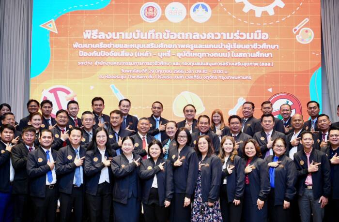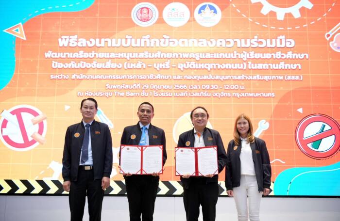 สสส.-สอศ. ร่วมลงนาม MOU เสริมศักยภาพครู-แกนนำนักเรียนอาชีวศึกษา ห่างไกลปัจจัยเสี่ยง เหล้า-บุหรี่-อุบัติเหตุ ขยายพื้นที่จาก 25 สถาบัน สู่ 45 สถาบันอาชีวศึกษา ครอบคลุมทั่วประเทศ ชี้เยาวชนไทยเผชิญปัญหาปัจจัยเสี่ยงรอบด้าน สูญเสียทั้งการเรียน สุขภาพ และชีวิต