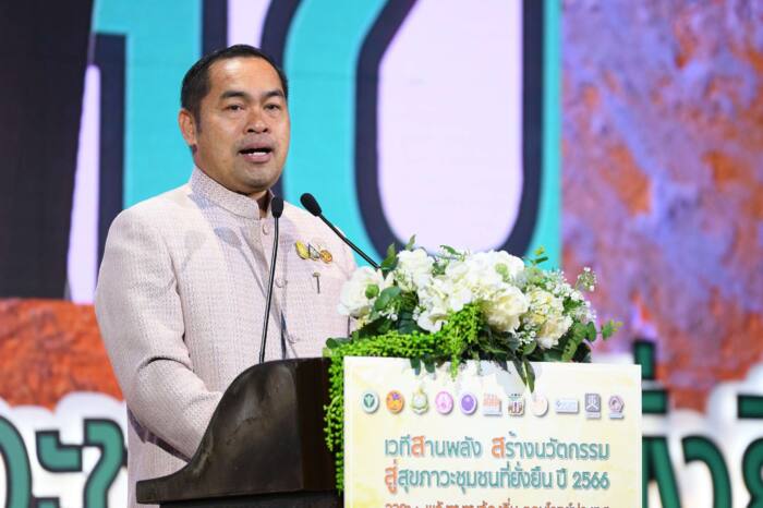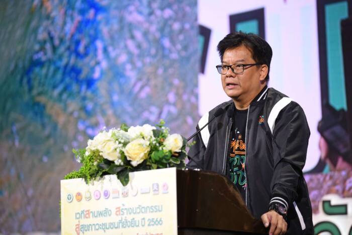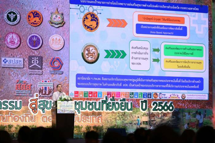 สำนักงานกองทุนสนับสนุนการสร้างเสริมสุขภาพ (สสส.) ร่วมกับ ภาคีเครือข่ายร่วมสร้างชุมชนท้องถิ่นน่าอยู่ จัดงาน เวที “สานพลัง สร้างนวัตกรรม สู่สุขภาวะชุมชนที่ยั่งยืน” ปี 2566 วาระ : พลังชุมชนท้องถิ่น ตอบโจทย์ประเทศ โดยมี นพ.โกเมนทร์ ทิวทอง รองผู้อำนวยการสำนักสนับสนุนระบบสุขภาพปฐมภูมิ กระทรวงสาธารณสุข (สธ.) นพ.อภิชาติ รอดสม รองเลขาธิการสำนักงานกองทุนหลักประกันสุขภาพแห่งชาติ (สปสช.) นายศิริพันธ์ ศรีกงพลี รองอธิบดีกรมส่งเสริมการปกครองท้องถิ่น (สถ.) ดร.ภูนท สลัดทุกข์ เลขาธิการสมาคมองค์การบริหารส่วนจังหวัดแห่งประเทศไทย เข้าร่วม ณ ศูนย์แสดงสินค้าและการประชุม อิมแพ็ค เมืองทองธานี