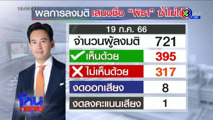รายการโหนกระแส ออกอากาศวันที่ 20 ก.ค. 66 ดำเนินรายการโดย “หนุ่ม กรรชัย กำเนิดพลอย” ผลิตในนามบริษัท ดีคืนดีวัน จำกัด ออกอากาศทุกวันจันทร์-ศุกร์ เวลา 12.35 น. ทางช่อง 3 กดเลข 33 ยังเกาะติดเหตุการณ์ การโหวตนายกรัฐมนตรีคนที่ 30 ของเมืองไทย รวมทั้งทิศทาง “พรรคเพื่อไทย” กับ “พรรคก้าวไกล” หลังศาลรัฐธรรมนูญสั่ง “พิธา ลิ้มเจริญรัตน์” หัวหน้าพรรคก้าวไกล หยุดปฏิบัติหน้าที่ ส.ส. ปมถือหุ้นสื่อ ตามที่ กกต. ยื่นคำร้องให้วินิจฉัย มีผลทันที โดยสัมภาษณ์ รศ.สมชัย ศรีสุทธิยากร ผอ.ศูนย์วิจัย ม.รังสิต อดีต กกต, รศ.ดร.นันทนา นันทวโรภาส คณบดีวิทยาลัยสื่อสารการเมือง ม.เกริก