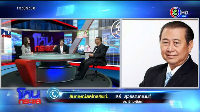 เสรี : คุณให้อาจารย์สมชัยเหมือนผมพูดเหมือนผมพูดผิด ท่านจัดรายการแบบนี้ไม่ถูก เพราะท่านไม่ให้โอกาสผมชี้แจง คุณออกรายการไปแล้วให้คนฟังทั้งประเทศ ผมก็จะบอกว่าสิ่งที่ผมพูดไม่ได้พูดไกลเลย ผมพูดตรงไปตรงมาชัดเจน ว่าในส่วนที่พรรคการเมืองเสนอมาแล้วไม่ผ่าน ท่านก็พูดเองว่าให้กลับไปดูมาตรา 88 แล้วมาตรา 88 ก็ชัดเจนว่าให้เสนอบัญชีไม่เกิน 3 ชื่อ ถ้าหมดบัญชีแล้วเหมือนที่ท่านพูดถึงกลับมาใช้ข้อยกเว้น ถ้าท่านเสนอซ้ำๆ ได้ตลอด ลงแล้วลงได้อีก แล้วเมื่อไหร่จะครบ มันก็ไม่มีทางครบ และไม่สามารถใช้ข้อยกเว้นเหมือนที่ท่านอธิบายได้ ฉะนั้นสิ่งที่ถูกต้องที่สุดคือเมื่อท่านพูดเองว่าต้องไปใช้ตามมาตรา 88 ฉะนั้นก็ต้องลงได้คนละครั้งเท่านั้นถึงจะได้หมดบัญชีได้ ถ้าหมดบัญชีแล้วหาไม่ได้ถึงมาใช้ข้อยกเว้น ท่านต้องให้ผมพูดให้หมดครับ
