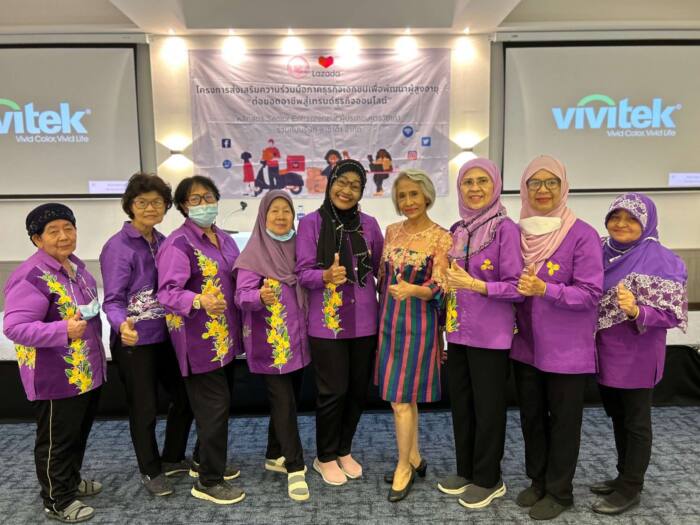โครงการส่งเสริมความร่วมมือภาคธุรกิจเอกชนเพื่อพัฒนาผู้สูงอายุ “ติดปีกทักษะดิจิทัล ต่อยอดธุรกิจออนไลน์ หลักสูตร “Senior Entrepreneur ผู้ประกอบการวัยเก๋า” เป็นส่วนหนึ่งของข้อตกลงความร่วมมือระหว่างกระทรวงการพัฒนาสังคมและความมั่นคงของมนุษย์ ในการเสริมทักษะด้านการตลาดอีคอมเมิร์ซแก่ผู้ประกอบการในกลุ่มเปราะบาง อาทิ ผู้พิการ แม่เลี้ยงเดี่ยว และผู้สูงอายุ สำหรับหลักสูตรเพื่อผู้สูงอายุ การอบรมได้มุ่งเน้นการเสริมทักษะในการจัดการร้านค้าออนไลน์ การใช้เครื่องมือทางการตลาดพื้นฐาน และการเล่าเรื่องสินค้าให้โดดเด่น โดยมีผู้สูงอายุเข้าร่วมทั้งสิ้น 340 คน จากกรุงเทพฯ อยุธยา ชลบุรี ขอนแก่น ลำปาง และภูเก็ต ส่วนใหญ่เป็นกลุ่มผู้ประกอบการสินค้าหัตถกรรม ผลิตภัณฑ์เครื่องใช้ อาทิ ผ้า และกระเป๋า รวมถึงสินค้าอาหารแปรรูปต่างๆ