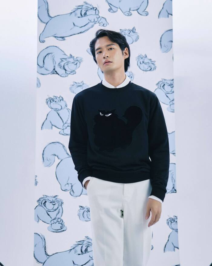 ในส่วนของหนุ่มๆ ทาสแมว ก็มีหลากหลายดีไซน์ให้ได้เลือกช้อปเช่นกัน อาทิ เสื้อยืดแต่งกระเป๋าหน้าอกปักลายเจ้าหนูที่กำลังวิ่งหนี Lucifer, เสื้อเชิ้ตแขนสั้นสีน้ำเงิน หรือจะเป็นสเวตเตอร์สีน้ำเงินปักเจ้าเหมียวขนปุย สีดำก็ให้ลุคที่เท่ได้เหมือนกัน สำหรับลุคไฮไลท์ที่อยากนำเสนอให้คุณสุภาพบุรุษได้ลองคือ เสื้อเชิ้ตแขนสั้นลาย Lucifer แบบ Overall Print ที่สามารถใส่เดี่ยวๆ ในวันสบายๆ หรือจะเพิ่มเลเยอร์ด้วยแจ็คเก็ตสักตัวเพื่อเพิ่มความเท่