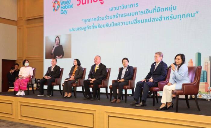 “การเคหะแห่งชาติ” ได้ร่วมจัดงานวันที่อยู่อาศัยโลกประจำปี 2566 ประเทศไทย (World Habitat Day 2023 – Thailand) ภายใต้แนวคิด “เศรษฐกิจชุมชนที่ยืดหยุ่น: เมืองที่ขับเคลื่อนความเจริญเติบโตและการฟื้นฟู” (Resilient Urban Economies : Cities as drivers of growth and recovery) ณ ห้องประชุมปกรณ์ อังศุสิงห์ ชั้น 2 อาคารกรมพัฒนาสังคมและสวัสดิการ กระทรวงการพัฒนาสังคมและความมั่นคงของมนุษย์ โดยมีผู้แทนภาคีเครือข่ายด้านการพัฒนาที่อยู่อาศัยทั้งภาครัฐ ภาคเอกชน ภาคประชาสังคม ภาคประชาชน และสื่อมวลชน เข้าร่วมงานอย่างคับคั่ง