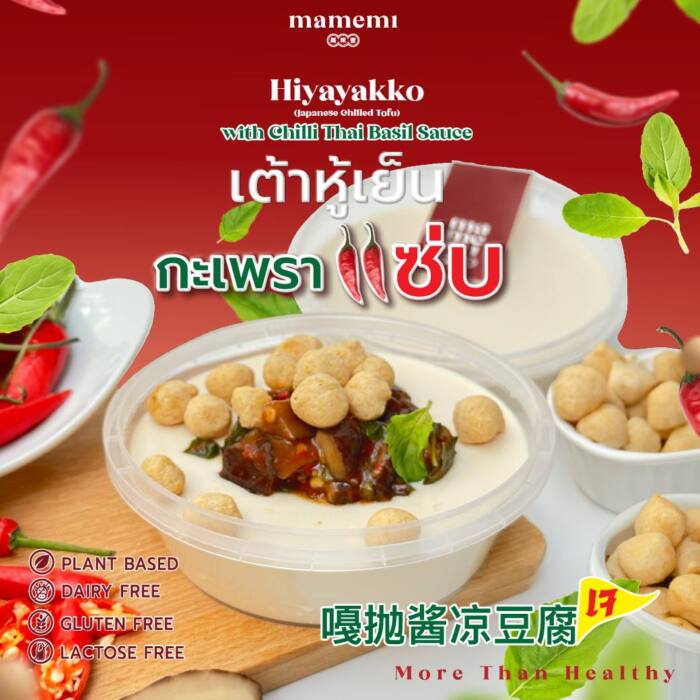 เทศกาลเจปีนี้ มาอร่อยละมุนผสมความจัดจ้านแบบไม่จำเจ น้ำนมถั่วเหลืองคั้นสด “มามีมี่” พร้อมเสิร์ฟความอร่อยสุขภาพดีจากสูตรดั้งเดิมของครอบครัวสืบทอดรุ่นสู่รุ่น กับเมนูใหม่ “เต้าหู้เย็น กะเพราแซ่บ” อร่อยละมุนกับ เต้าหู้ เนียนนุ่มสไตล์ญี่ปุ่น ราดกะเพราเห็ดหอม รสจัดจ้าน แซ่บถึงเครื่อง ท็อปด้านบนด้วยถั่วเหลืองกรอบ ให้ความอร่อย แบบหลากหลายเนื้อสัมผัส เหมาะสำหรับคนรักสุขภาพ ชื่นชอบอาหารวีแกน และอาหารที่ทำจากพืช (Plant Based) ที่ร้านมามีมี่ ทุกสาขา