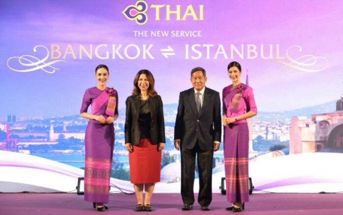 บริษัท การบินไทย จำกัด (มหาชน) จัดงานแนะนำเส้นทางบินใหม่ สู่นครอิสตันบูล สาธารณรัฐทูร์เคีย เสริมความแข็งแกร่งของเครือข่ายเส้นทางบินของบริษัทฯ โดยมี นายปิยสวัสดิ์ อัมระนันทน์ ประธานคณะผู้บริหารแผนฟื้นฟูกิจการ บริษัทฯ เป็นประธานในงาน พร้อมด้วยนางแซรัป แอร์ซอย เอกอัครราชทูตสาธารณรัฐทูร์เคียประจำประเทศไทย นายอสิ ม้ามณี อธิบดีกรมยุโรป นายศิริปกรณ์ เชี่ยวสมุทร รองผู้ว่าการด้านตลาดยุโรป แอฟริกา ตะวันออกกลาง และอเมริกา การท่องเที่ยวแห่งประเทศไทย (ททท.) นายพรชัย ฐีระเวช ผู้บริหารแผนฟื้นฟูกิจการ นายชาย เอี่ยมศิริ ประธานเจ้าหน้าที่บริหารและผู้บริหาร ร่วมในงาน
