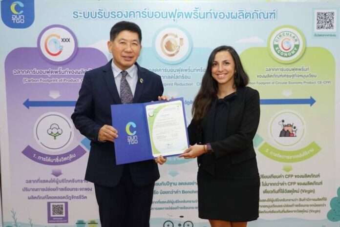 นางอันนา ลอรี ลู เดอเลค เอ็บ เดอ ฟูโกด์ (ขวา) ผู้อำนวยการด้านความยั่งยืน และ พัฒนาธุรกิจ ชไนเดอร์ อิเล็คทริค ดูแลประเทศไทย ลาว และเมียนมา รับมอบประกาศนียบัตรเครื่องหมายรับรองคาร์บอนฟุตพริ้นท์ประจำปี 2566 ในโครงการ Carbon Footprint Organization (CFO) จาก นายเกียรติชาย ไมตรีวงษ์ (ซ้าย) ผู้อำนวยการ องค์การบริหารจัดการก๊าซเรือนกระจก (องค์การมหาชน) หรือ TGO ซึ่งการรับมอบในครั้งนี้เป็นหนึ่งในความมุ่งมั่นในการไปสู่ความเป็นกลางทางคาร์บอนของชไนเดอร์ อิเล็คทริค ประเทศไทย โดยกระบวนการหลักที่ทำให้บรรลุเป้าหมายได้แก่ การทรานส์ฟอร์มสู่ดิจิทัล ทั้งด้านอุตสาหกรรมและพลังงาน โดยล่าสุด ได้ติดตั้งระบบโซลาร์รูฟท็อป ขนาด 1,395 กิโลวัตต์ ทำให้ลดการปล่อยคาร์บอนได้อย่างมหาศาล เมื่อเทียบกับกิจกรรมเชิงธุรกิจต่างๆ ในประเทศไทย โดยที่ผ่านมาชไนเดอร์ อิเล็คทริค ประเทศไทยได้ใช้ประโยชน์จากดิจิทัลมาอย่างต่อเนื่อง ทำให้การรวบรวมตัวเลขที่สำคัญ เช่น เส้นทางของคาร์บอน ทำได้อย่างรวดเร็ว ทำให้ปัจจุบันชไนเดอร์ อิเล็คทริค ประเทศไทย จัดเป็น “องค์กรผู้นำด้านการจัดการก๊าซเรือนกระจก” ในลิสต์รายชื่อของ TGO ซึ่งเป็นรายแรกของประเทศไทยในกลุ่มธุรกิจเดียวกัน