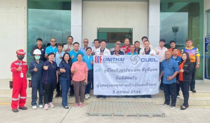 นายพันลึก กิตติสาเรศ กรรมการผู้จัดการ บริษัท ยูนิไทย ชิปยาร์ด แอนด์เอนจิเนียริ่ง จำกัด นายอภิเชษฐ์ บุญเผื่อน ผู้อำนวยการฝ่ายปฏิบัติการ บริษัทยูนิไทยชิปยาร์ดฯ นายสุรเชษฐ์ กังวานวาณิชย์ รองผู้จัดการทั่วไปฝ่ายปฏิบัติการ บริษัทซียูอีแอล จำกัด นางสาวพรเพ็ญ ด่านภักดี ผู้จัดการฝ่ายสื่อสารองค์กร กลุ่มบริษัทยูนิไทย และทีมชุมชนสัมพันธ์ ให้การต้อนรับ ประธานคณะกรรมการชุมชนทั้ง 11 ชุมชน ประกอบไปด้วย ชุมชนบ้านแหลมฉบัง ชุมชนบ้านทุ่ง ชุมชนวัดมโนรม ชุมชนอ่าวอุดม ชุมชนตลาดอ่าวอุดมชุมชนบ้านนาเก่า ชุมชนบ้านนาใหม่ ชุมชนหมู่บ้านแหลม ทอง ชุมชนบ้านทุ่งกราด ชุมชนบ้านหนองมะนาว และชุมชนบ้านบางละมุงเข้าเยี่ยมชมกิจการ วัตถุประสงค์การเปิดบ้านต้อนรับคณะกรรมการชุมชนในครั้งนี้ เพื่อได้พบปะพูดคุย ทำความรู้จักกับผู้บริหารบริษัทยูนิไทยชิปยาร์ด ซียูอีแอล และประธานคณะกรรมการทุกชุมชนรอบบริษัท รวมทั้งแลกเปลี่ยนแสดงความคิดเห็นในโครงการพัฒนาชุมชน ประจำปี 2566 โดยในปีนี้ บริษัทฯยังคงมีเจตนารมณ์ในการสนับสนุนและพัฒนาชุมชนอย่างต่อเนื่องผ่านกิจกรรมที่จัดขึ้นโดยมุ่งเน้นการในการพัฒนาอย่างยั่งยืนทั้ง 4 มิติ คือ ด้านเศรษฐกิจ ด้านสังคม ด้านการศึกษา และด้านสิ่งแวด ล้อม เพื่อให้เกิดประโยชน์สูงสุดต่อผู้มีส่วนได้เสียทุกภาคส่วน