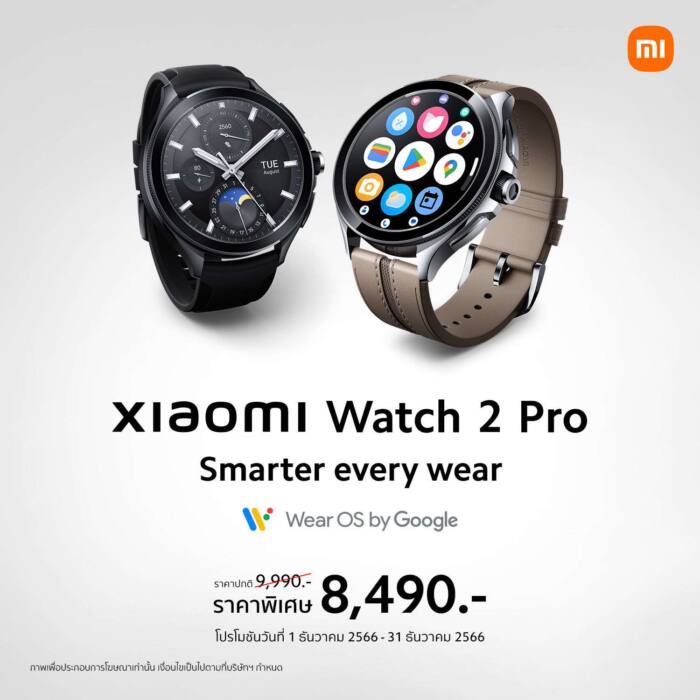 เสียวหมี่ ประเทศไทย วางจำหน่ายนาฬิกาอัจฉริยะ Xiaomi Watch 2 Pro รุ่นใหม่ล่าสุด ที่จะช่วยคุณใช้ชีวิตได้สะดวกสบายยิ่งขึ้นในทุกการสวมใส่ โดยมาพร้อมหน้าจอ AMOLED สีสันสดใสขนาด 1.43 นิ้ว พร้อมโหมดออกกำลังกายที่มากกว่า 150 โหมด วางจำหน่ายในราคา 9,990 บาท พิเศษ! สำหรับลูกค้าที่ซื้อสินค้าในระหว่างวันที่ 1 – 31 ธันวาคม 2566 สามารถซื้อสินค้าในราคาพิเศษเพียง 8,490 บาท เป็นเจ้าของ Xiaomi Watch 2 Pro ได้แล้ววันนี้ ที่ Xiaomi Store และร้านตัวแทนจำหน่ายที่ร่วมรายการทั่วประเทศ และช่องทางออนไลน์แพลตฟอร์มที่ร่วมรายการ