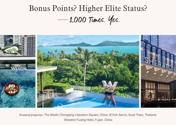 แมริออท บอนวอย เชิญชวนสมาชิกทุกท่านมาสัมผัสสุดยอดบริการจากโรงแรมในเครือที่ครอบคลุมกว่า 30 แบรนด์ และรับคะแนนโบนัสแมริออท บอนวอยสูงสุดถึง 76,000 คะแนน และโบนัส Elite Night Credit รวม 76 เครดิต สมาชิกที่ลงทะเบียนเพื่อรับโปรโมชั่นแล้วจะได้รับสิทธิ์พักฟรีอีกหนึ่งคืน สำหรับทุก ๆ คืนที่เข้าพัก เริ่มตั้งแต่คืนแรก