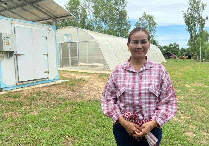 “นอกจากระบบโซลาร์เซลล์สูบน้ำแล้ว กระทรวงพลังงานก็ยังให้โรงอบพลังงานแสงอาทิตย์ และตู้แช่พลังงานแสงอาทิตย์ เพื่อให้เกษตรกรไว้ใช้พักสินค้าทางเกษตร ได้รวมตัวกันเพื่อแปรรูปสินค้าทางการเกษตร เป็นการปรับตัวที่มองเห็นการพัฒนาขั้นอย่างเห็นได้ชัด ต้องขอบคุณทางกระทรวงพลังงานที่รับฟังความต้องการของเกษตรกร และให้การสนับสนุนในส่วนนี้อย่างจริงจัง” นางพยอมกล่าว