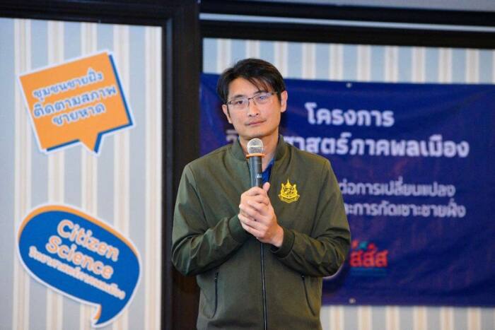 ดร.ชาติวุฒิ วังวล ผู้อำนวยการสำนักสนับสนุนการควบคุมปัจจัยเสี่ยงทางสุขภาพ สสส. กล่าวว่า สสส. ให้ความสำคัญกับการลดมลพิษทางสิ่งแวดล้อมตั้งแต่ต้นทาง เน้นสร้างการมีส่วนร่วมจากทุกภาคส่วน เพื่อเร่งแก้ไขปัญหาที่ส่งผลกระทบต่อคุณภาพชีวิตและความเป็นอยู่ของประชาชน รวมถึงการจัดการทรัพยากรทะเลและชายฝั่ง สสส. จึงได้สานพลังภาคีเครือข่าย พัฒนานวัตกรรม “เครื่องวัดความลึกน้ำทะเลชายฝั่ง” อย่างง่าย ที่ใช้วัสดุท่อ PVC ให้คนในพื้นที่สามารถใช้งานด้วยตนเอง และเรียนรู้ระบบตรวจวัดรูปตัดชายหาดด้วยเทคโนโลยี BEACH MONITORING (BMON) ที่เป็นฐานข้อมูลการเปลี่ยนแปลงชายหาด ถือเป็นครั้งแรกของไทยที่ให้ประชาชนเข้ามามีส่วนร่วมตามหลักวิทยาศาสตร์ภาคพลเมือง (Citizen Science) ทำให้ชุมชนในพื้นที่เกิดความรู้ ความเข้าใจ สร้างความตื่นตัวถึงการเปลี่ยนแปลงสภาพภูมิอากาศและการกัดเซาะชายฝั่ง เรียนรู้ต่อการปรับตัวต่อภัยคุกคามได้อย่างถูกต้อง