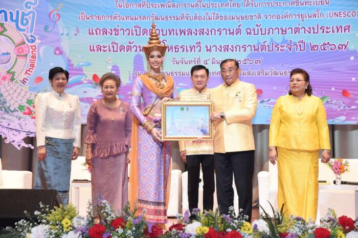 ด้าน นายโกวิท ผกามาศ อธิบดีกรมส่งเสริมวัฒนธรรม กล่าวว่า กรมส่งเสริมวัฒนธรรม ได้ดำเนินการจัดกิจกรรมสืบสานประเพณีสงกรานต์ พุทธศักราช 2567 ในโอกาสที่ประเพณี “สงกรานต์ในประเทศไทย (Songkran in Thailand, traditional Thai New Year Festival)” ได้รับการประกาศขึ้นทะเบียนในรายการตัวแทนมรดกวัฒนธรรมที่จับต้องไม่ได้ของมนุษยชาติ จากองค์การยูเนสโก ได้แก่ การจัดทำบทเพลงสงกรานต์ ฉบับภาษาต่างประเทศ จำนวน 4 ภาษา ภาษาไทย ภาษาอังกฤษ ภาษาจีน และภาษาฝรั่งเศส เพื่อเป็นการเผยแพร่ประชาสัมพันธ์ให้ประชาชนและนักท่องเที่ยวชาวต่างชาติ ได้รับรู้ถึงคุณค่าสาระของประเพณีสงกรานต์ในประเทศไทยอย่างกว้างขวาง เป็นการสนับสนุนการสร้างพลังสร้างสรรค์ หรือ Soft Power ของประเทศเพื่อยกระดับและพัฒนาด้านความรู้ ความสามารถ ความคิดสร้างสรรค์ของคนไทย ให้สร้างมูลค่าและสร้างรายได้ ให้แก่ประเทศไทย