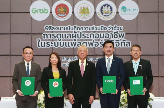 นายพิพัฒน์ รัชกิจประการ รัฐมนตรีว่าการกระทรวงแรงงาน เผยว่า “แพลตฟอร์มดิจิทัลเป็นรูปแบบธุรกิจที่ช่วยสร้างมูลค่าทางเศรษฐกิจของประเทศ อีกทั้งยังเป็นเสมือนตัวกลางที่อำนวยความสะดวกระหว่างผู้บริโภคผู้ให้บริการ และผู้ประกอบอาชีพในระบบแพลตฟอร์มดิจิทัล ซึ่งรัฐบาล โดยกระทรวงแรงงานได้กำหนดนโยบายที่ให้ความสำคัญกับการสร้างรากฐานทางเศรษฐกิจ พัฒนาคุณภาพชีวิตด้วยการคุ้มครองแรงงานให้ได้รับการดูแลสภาพการจ้าง สภาพการทำงาน รวมทั้งความปลอดภัยในการทำงาน กระทรวงแรงงาน จึงมีแนวคิดในการจัดทำบันทึกความร่วมมือ ว่าด้วยการดูแลผู้ประกอบอาชีพในระบบแพลตฟอร์มดิจิทัล ระหว่างหน่วยงานที่เกี่ยวข้องในสังกัดกระทรวงแรงงาน ร่วมกับ บริษัท แกร็บแท็กซี่ (ประเทศไทย) จำกัด เพื่อเป็นการแสดงเจตนารมณ์ร่วมกันในการดูแลผู้ประกอบอาชีพในระบบแพลตฟอร์มดิจิทัล ไม่ว่าจะเป็น กรมสวัสดิการและคุ้มครองแรงงานในการหาแนวทางยุติปัญหาที่เกิดขึ้น ระหว่างคนทำงานในระบบแพลตฟอร์มดิจิทัลกับผู้ให้บริการฯ หรือมีช่องทางในการบริหารจัดการกับปัญหาที่อาจจะนำไปสู่ความขัดแย้งที่ชัดเจน รวมถึงการสร้างงาน ให้กับผู้สูงอายุที่ต้องการเลือกประกอบอาชีพอิสระ หรือผู้ที่ต้องการหารายได้เสริม โดยได้ร่วมมือกับกรมการจัดหางานในการส่งตำแหน่งงานว่างเพื่อสร้างอาชีพ ตลอดจนส่งเสริมการทำงาน หรือสร้างมาตรฐานในการทำงานที่ปลอดภัย โดยร่วมกับสถาบันส่งเสริมความปลอดภัย อาชีวอนามัย และสภาพแวดล้อมในการทำงาน (องค์การมหาชน) ซึ่งการลงนามร่วมกันในครั้งนี้จะส่งผลให้เกิดความสัมพันธ์อันดีระหว่างผู้ประกอบธุรกิจบริการระบบแพลตฟอร์มดิจิทัลกับผู้ประกอบอาชีพในระบบแพลตฟอร์มดิจิทัล และเพิ่มโอกาสให้เข้าถึงอาชีพของผู้ว่างงานและผู้สูงอายุที่ประสงค์จะทำงานอีกด้วย”
