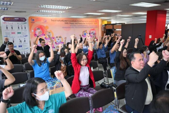 อึ้ง! SMEs ไทย 50% เผชิญปัญหาสมองไหล พนักงานลาออกสูง เหตุ เครียด-ขาดความสุข กระทบการเติบโตภาคธุรกิจ-อุตสาหกรรม สสส. สานพลัง อก. ตั้งศูนย์ Happy Workplace Center 5 แห่งทั่วประเทศ หนุน ยกระดับนโยบาย-ใช้นวัตกรรม Happy Meter สร้างสภาพแวดล้อมเอื้อคนทำงานมีความสุข-คุณภาพชีวิตดี-สุขภาวะดี เพิ่มขึ้น 12 ล้านคน ภายในปี 75