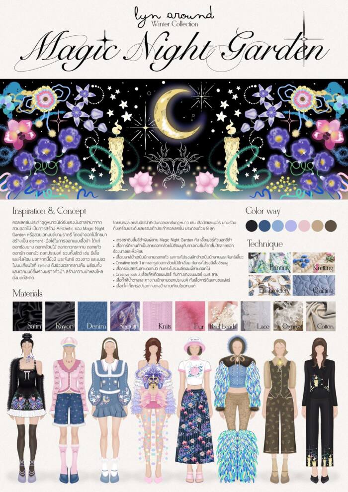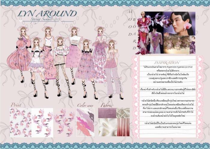 ปิดท้ายที่ มาย พฤกษากิจเจริญ คณะศิลปกรรมศาสตร์ สาขาวิชาศิลปะการออกแบบพัสตราภรณ์ เอกแฟชั่นดีไซน์ มหาวิทยาลัยธรรมศาสตร์ เผยว่า “อยากเพิ่มเติมความรู้ให้ครอบคลุมจากที่เรียนมา จึงได้สมัครเข้าร่วมโครงการฯ โดยได้ส่งผลงานการออกแบบผ่านดีไซน์ดอกกล้วยไม้ Aganisia Cyanea Orchid ที่เป็นดอกไม้ที่หายาก มีสีสันเฉพาะตัวเปรียบเสมือนเด็กรุ่นใหม่ที่มีเอกลักษณ์อันโดดเด่นด้วยความสามารถของแต่ละคนที่ไม่เหมือนกัน โดยพลังของรุ่นใหม่จะช่วยผลักดันให้องค์กรเดินหน้าต่อไปในยุคสมัยใหม่แห่งอนาคตได้ จึงคิดว่าการได้รับโอกาสในครั้งนี้ จะได้เพิ่มพูนความรู้ที่มีให้จากการฝึกงานที่ยัสปาล กรุ๊ป”