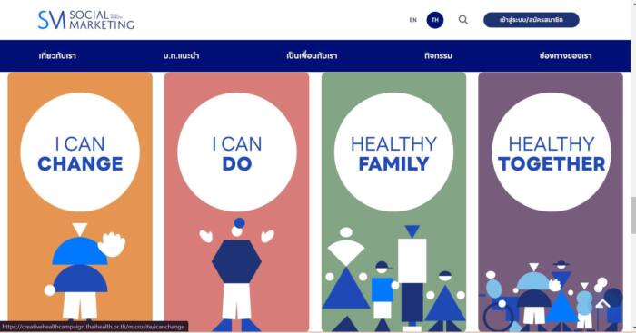 น.ส.สุพัฒนุช กล่าวต่อว่า เว็บไซต์ creativehealthcampaign.thaihealth.or.th แบ่งออกเป็น 3 หมวดหมู่ 1.เบื้องหลังการออกแบบแต่ละแคมเปญ 2.ช่องทางการแสดงความคิดเห็นและเข้าร่วมทีมรณรงค์ 3.แคมเปญต่าง ๆ โดยจัดเป็น 4 กลุ่ม (เปลี่ยนแปลง, ความสุข, ครอบครัว, สุขภาพที่ดี) เน้นสร้างความเข้าใจกระบวนการการทำงานสื่อสารการตลาดเพื่อสังคมของ สสส. ที่มีการใช้เครื่องมือการสื่อสารที่หลากหลาย โดยเน้นการแนะนำทางเลือก เพื่อให้ทุกคนมีแนวทางปรับเปลี่ยนพฤติกรรมในทางที่ดีขึ้น แคมเปญส่วนใหญ่สร้างการจดจำจนกลายเป็นกระแสสังคม เช่น แคมเปญรณรงค์ลด ละ เลิกเครื่องดื่มแอลกอฮอล์ “จน เครียด กินเหล้า” “ให้เหล้าเท่ากับแช่ง” “งดเหล้าเข้าพรรษา” เป็นส่วนสำคัญที่ทำให้มีผู้เข้าร่วมเปลี่ยนพฤติกรรมลด ละ เลิกเหล้าในช่วงเข้าพรรษาเพิ่มขึ้นอย่างต่อเนื่อง ผู้ที่สนใจข้อมูลหรือสนใจเข้าร่วมกับ สสส. ผลิตสื่อที่มีประโยชน์ต่อสังคม สามารถเข้าร่วมได้ที่ https://creativehealthcampaign.thaihealth.or.th/