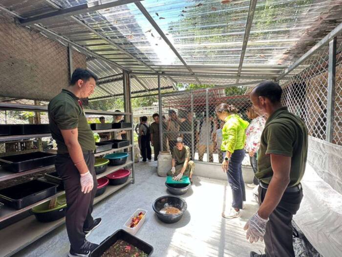 ดร.ธนิต ชังถาวร รองผู้อำนวยการสำนักงานพัฒนาเศรษฐกิจจากฐานชีวภาพ และ เจ้าหน้าที่ สพภ. ร่วมกับ คุณสมเดช หง้าฝา รองประธานชมรมธุรกิจการท่องเที่ยวอ่าวไร่เลย์แหลมพระนาง และ คุณชุมพล จันทะลุน ผู้จัดการทั่วไปโรงแรมรายาวดี จัดกิจกรรมอบรมเชิงปฏิบัติการ เรื่อง “นวัตกรรมการจัดการขยะอินทรีย์ด้วยแมลงโปรตีน BSF สำหรับผู้ประกอบการที่พักและร้านอาหารในพื้นที่อ่าวไร่เลย์ แหลมพระนาง” ณ โรงแรมรายาวดี กระบี่ โดยได้รับเกียรติจาก ศาสตราจาย์ ดร.ยุพา หาญบุญทรง ผู้เชี่ยวชาญด้านกีฏวิทยา มหาวิทยาลัยขอนแก่น ผู้ช่วยศาสตราจารย์ ดร.เบญจวรรณ คงขน และอาจารย์นัสวัล บุญวงศ์ นักวิจัยเครือข่ายโครงการ RU-BSF มหาวิทยาลัยราชภัฏสุราษฎร์ธานี ร่วมเป็นวิทยากรบรรยายและฝึกปฏิบัติให้กับตัวแทนพนักงานโรงแรมในพื้นที่อ่าวไร่เลย์ แหลมพระนาง ต.อ่าวนาง อ.เมือง จ.กระบี่ จำนวนกว่า 20 คน