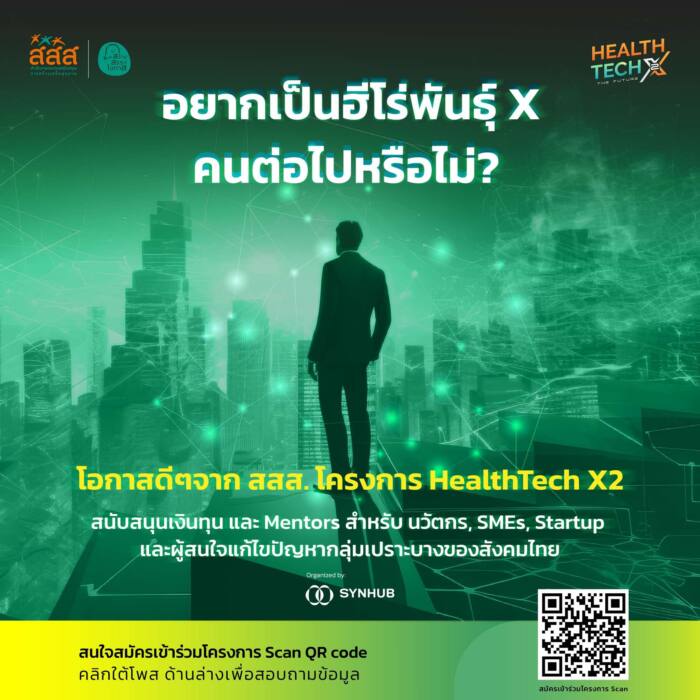 น.ส.รัศมี สืบชมภู ประธานเจ้าหน้าที่บริหารร่วม SYNHUB และหัวหน้าโครงการ HealthTech X 2 The Future กล่าวว่า HealthTech X 2 เปิดรับสมัครนักพัฒนาไทย โดยไม่จำกัดเพศ อายุ การศึกษา ตั้งแต่วันนี้ ถึง 9 ก.ย. 2567 และประกาศรายชื่อทีมผ่านเข้ารอบ Pre-Pitching ในวันที่ 14 ก.ย. 2567 โดยตลอดระยะเวลาดำเนินโครงการ ต.ค. 2567 – ส.ค. 2568 จะมีโปรแกรมบ่มเพาะและผลักดันนวัตกรไทย X-Innovator เพื่อสร้างความพร้อมนวัตกรไทยนำไปสู่การสร้างโอกาสให้เติบโตเป็นผู้ประกอบการธุรกิจเพื่อสุขภาพอย่างยั่งยืนต่อไป ติดต่อสอบถามรายละเอียดเพิ่มเติมได้ที่แอปพลิเคชันไลน์ @healthtechx เฟซบุ๊กแฟนเพจ HealthTech X อีเมล์ techhealthx@gmail.com หรือ โทร. 095-952-7675
